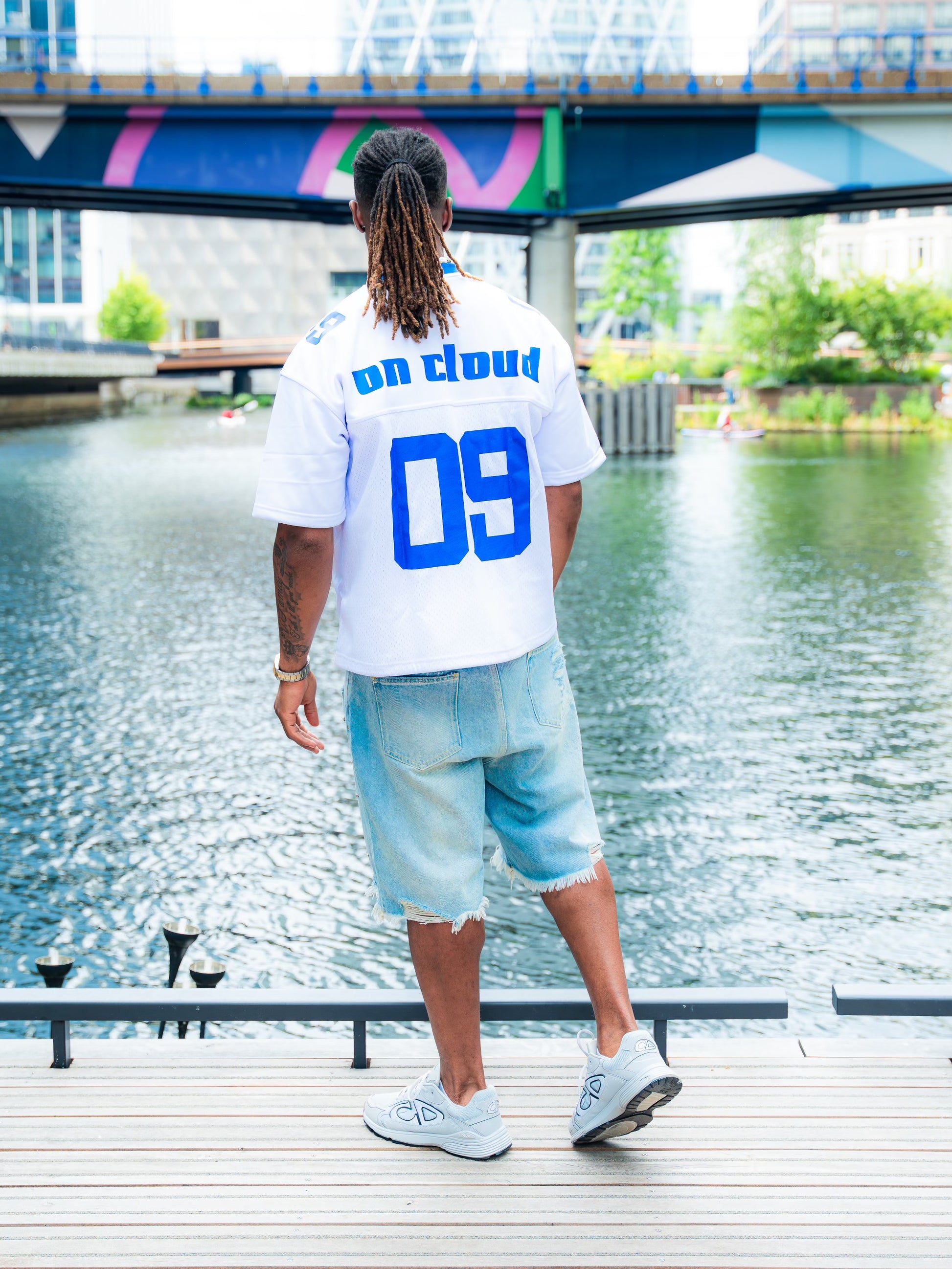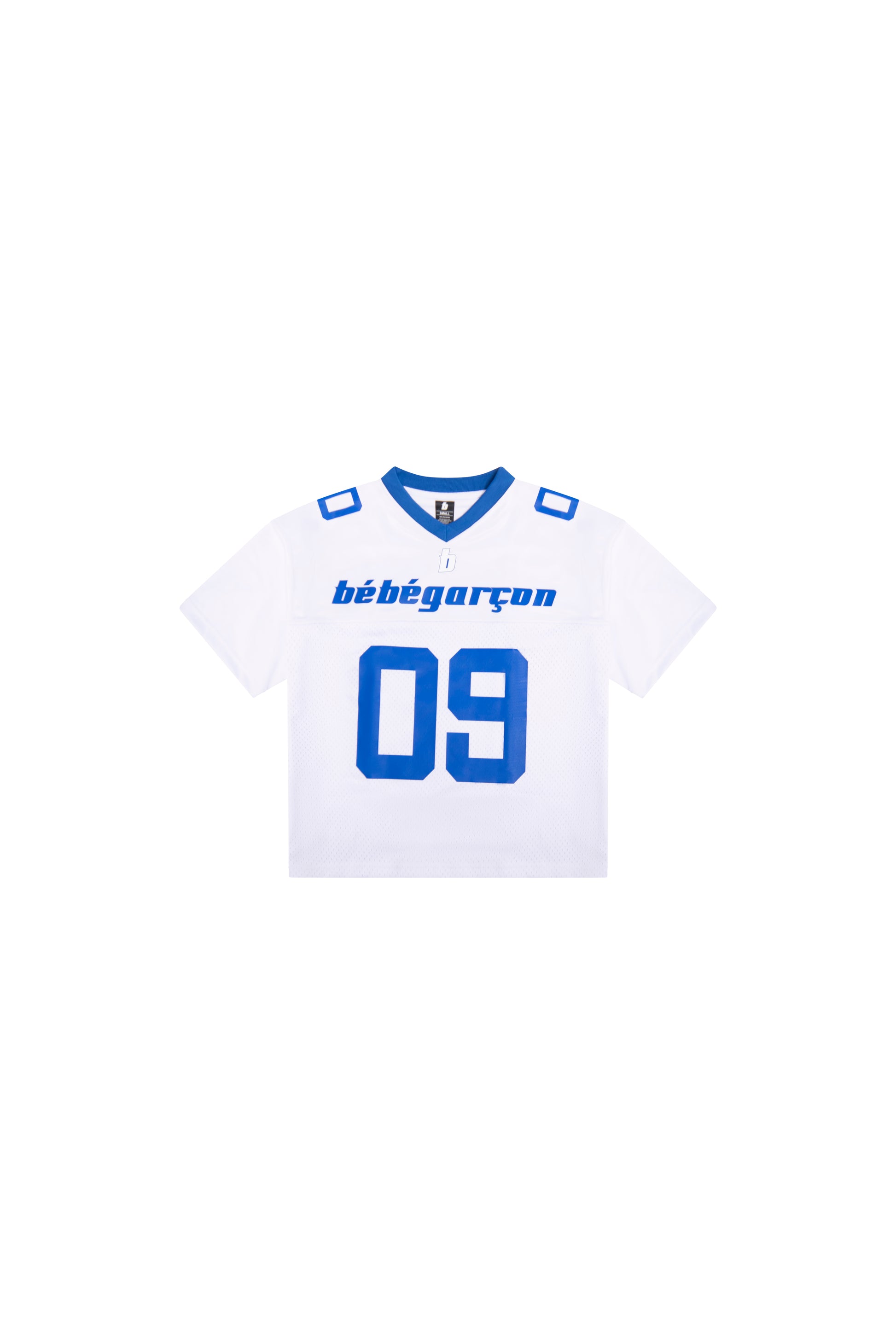 The new 'One Of 01' white & blue short sleeve jerseys are out now. The custom Bébégarçon writing on the front of the Jersey, while 'One Of 01' is on the back.