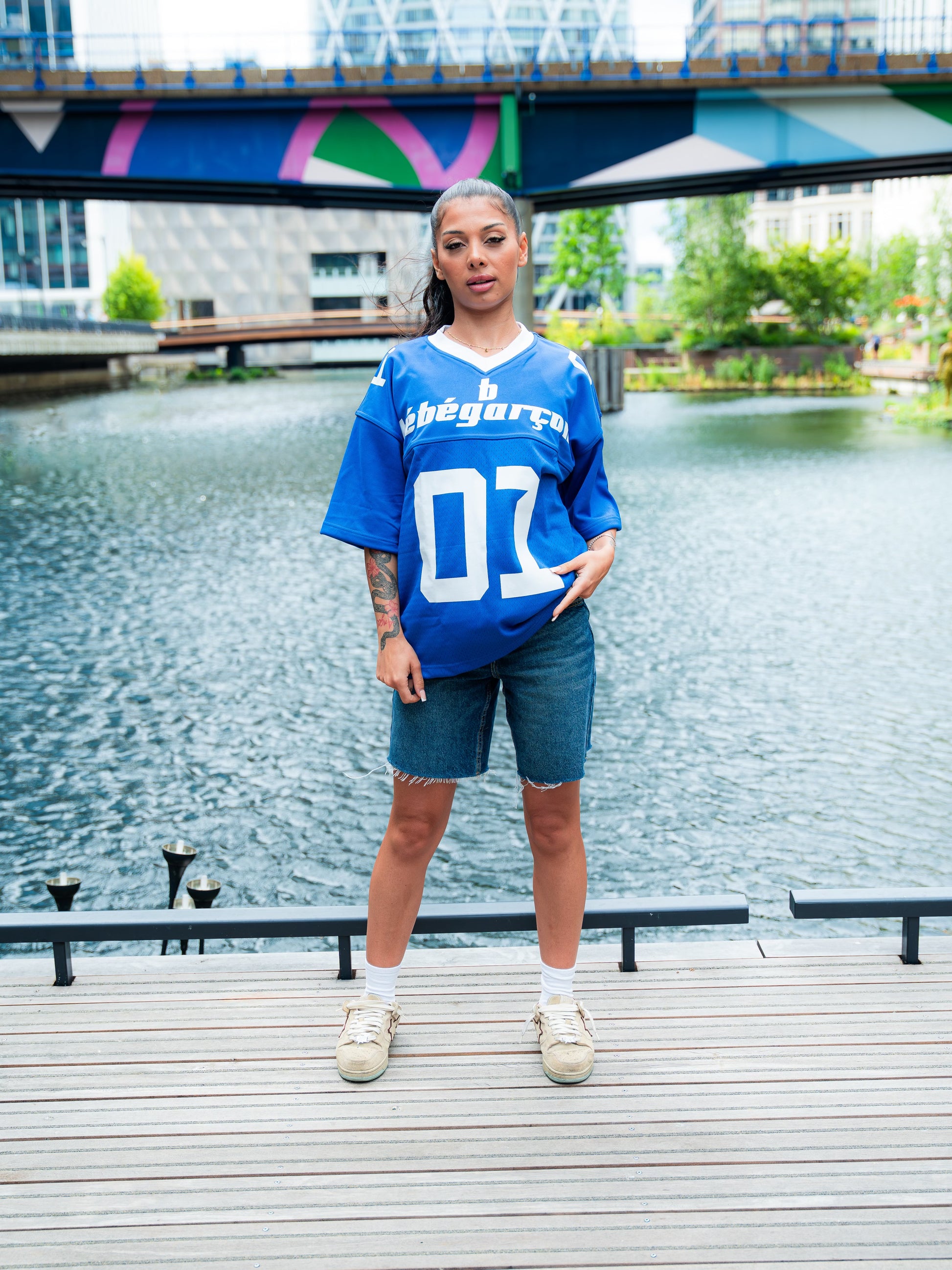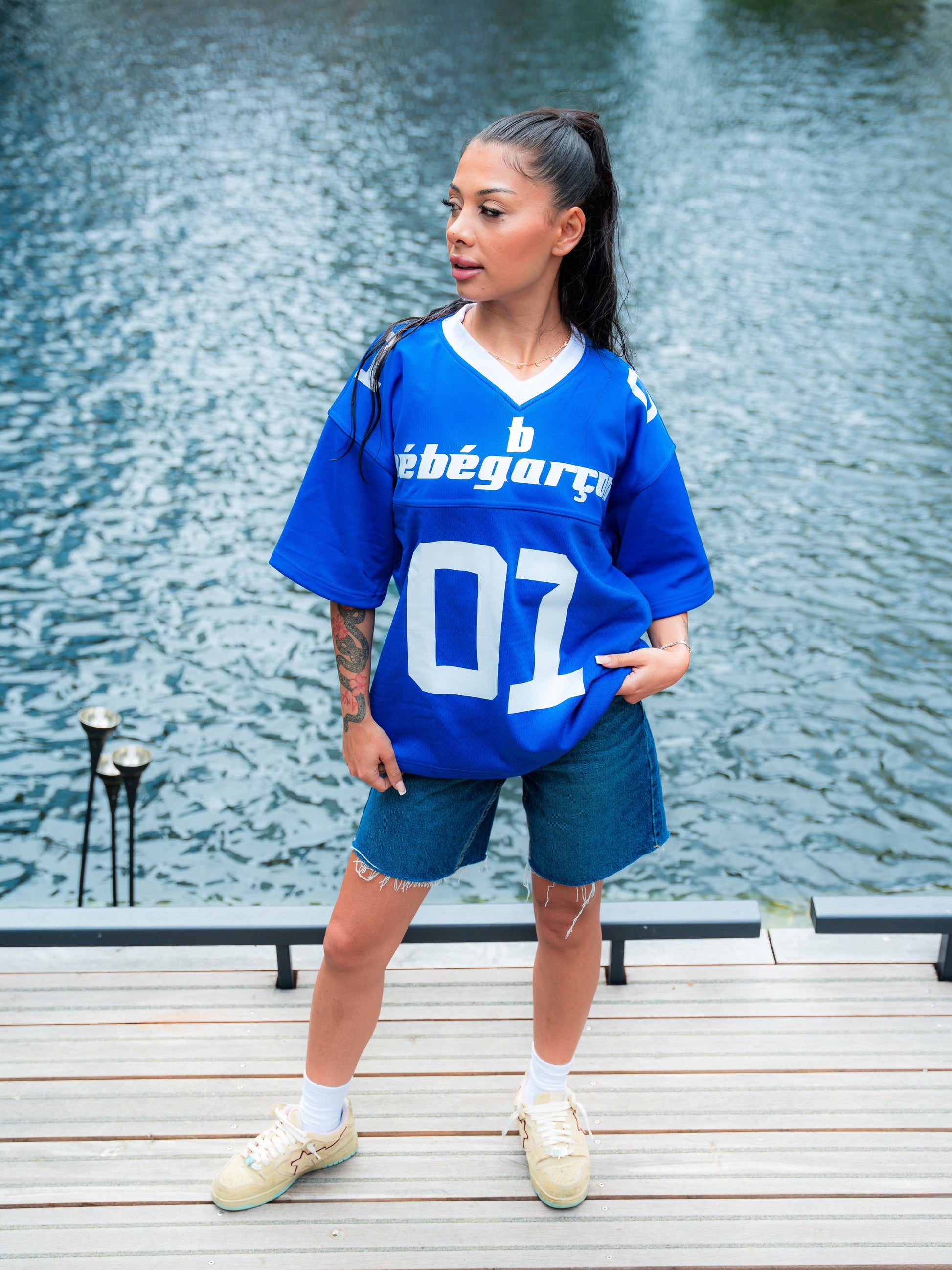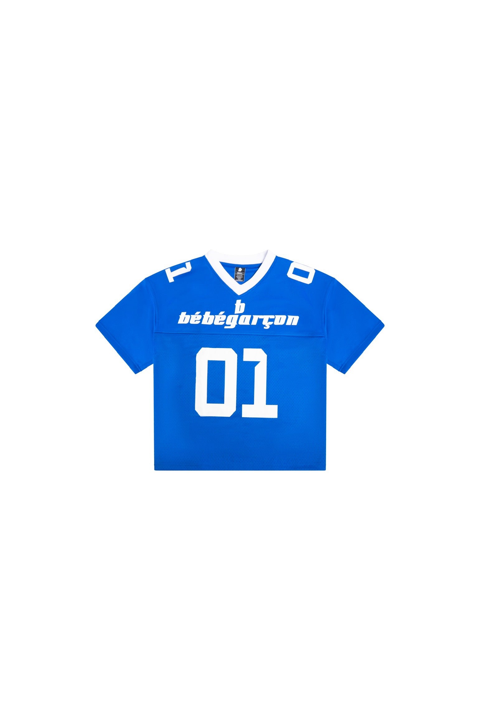 The new 'One Of 01' Blue & White short sleeve jerseys are out now. The custom Bébégarçon writing on the front of the Jersey, while 'One Of 01' is on the back.